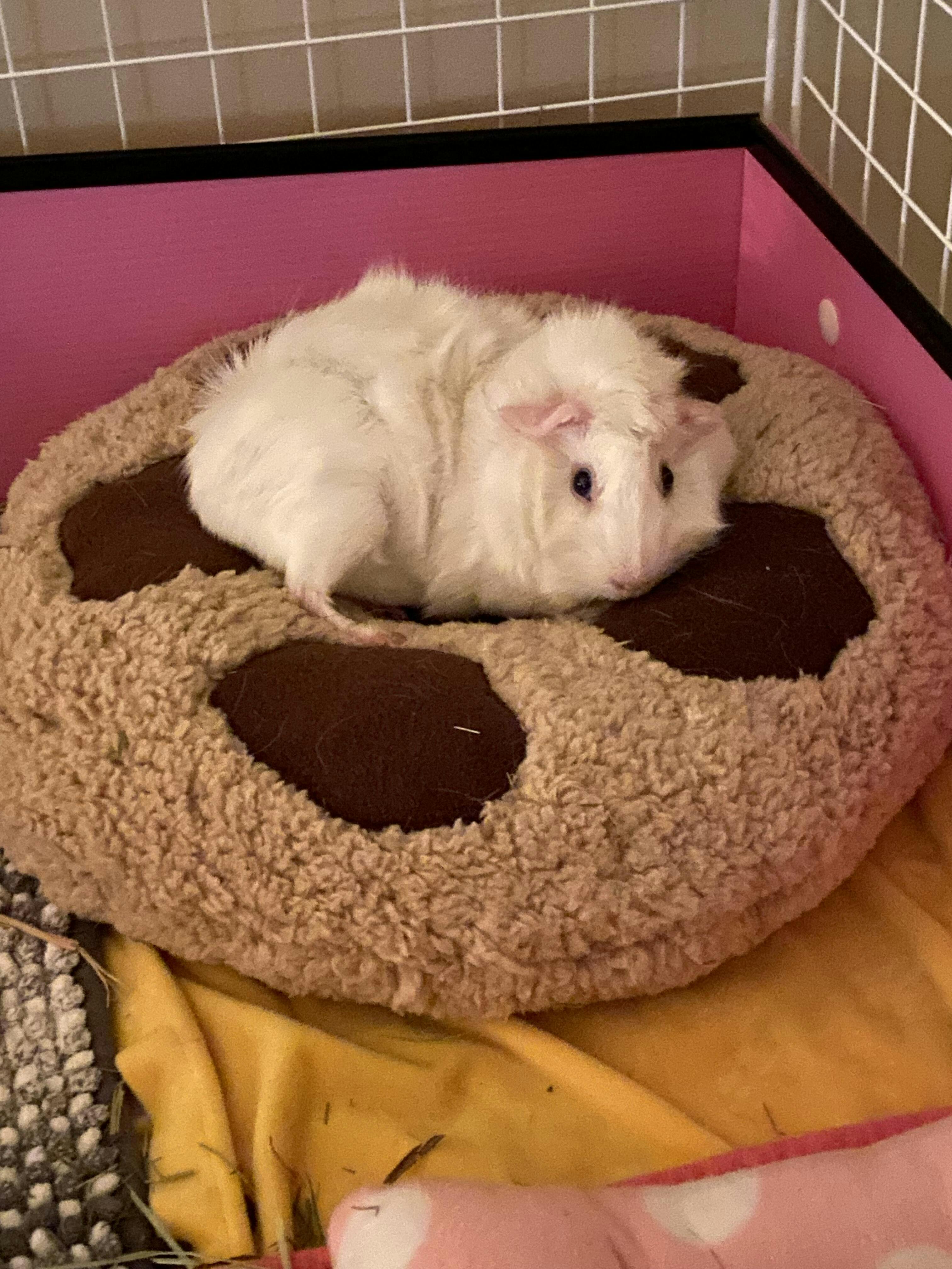 Handmade pillows designed to look like cookies. Each bed is about 12” in diameter. They are made of Sherpa, fleece, and Poly-Fill. They are also lined with Uhaul for absorbency.