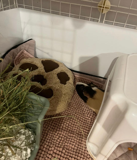 I am extremely pleased with the product, it is just as described and will be perfect for my guinea pigs. I would definitely recommend this product to anyone who has guinea pigs and is looking for a cozy yet sustainable bedding choice. I love how it is very padded which means it is guaranteed to be comfortable for their feet. Their pee is absorbed through the liner, leaving a safe, clean environment.